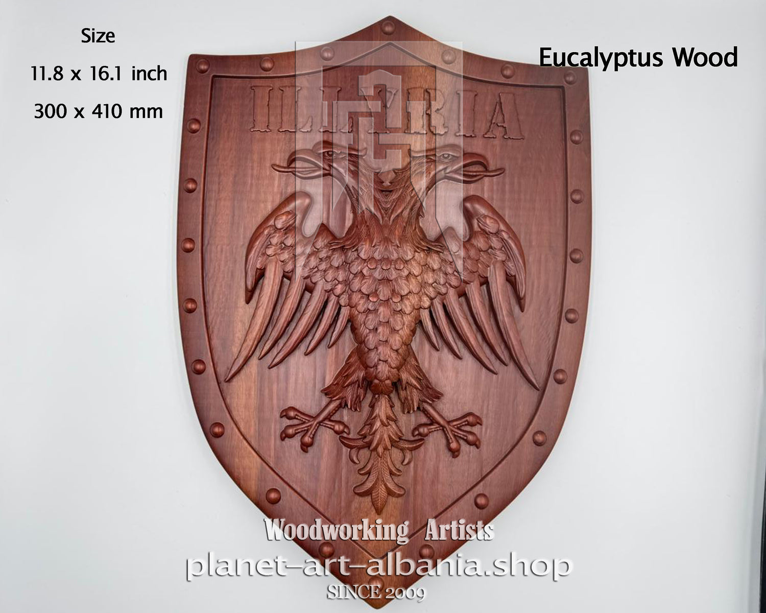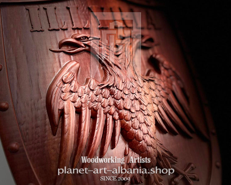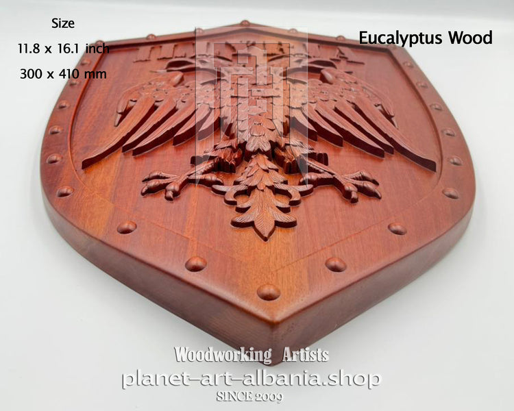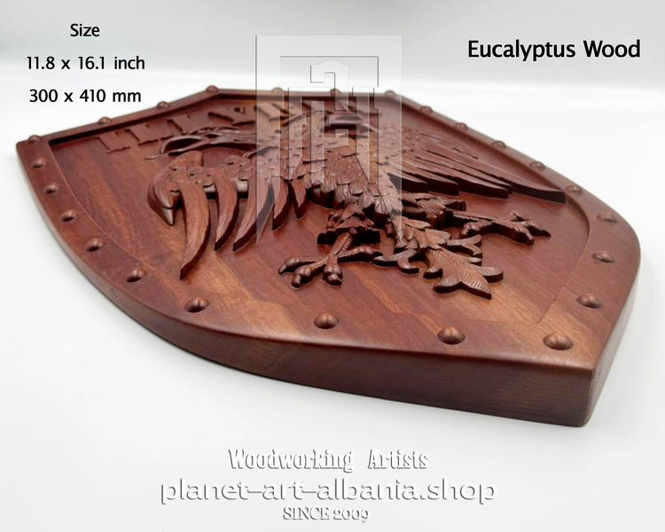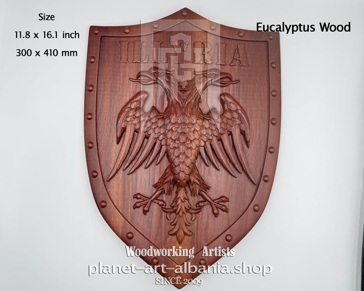 Illyria Eagle Shield, Wooden Wall Art, Patriotic, CNC Carved in Eucalyptus Wood
