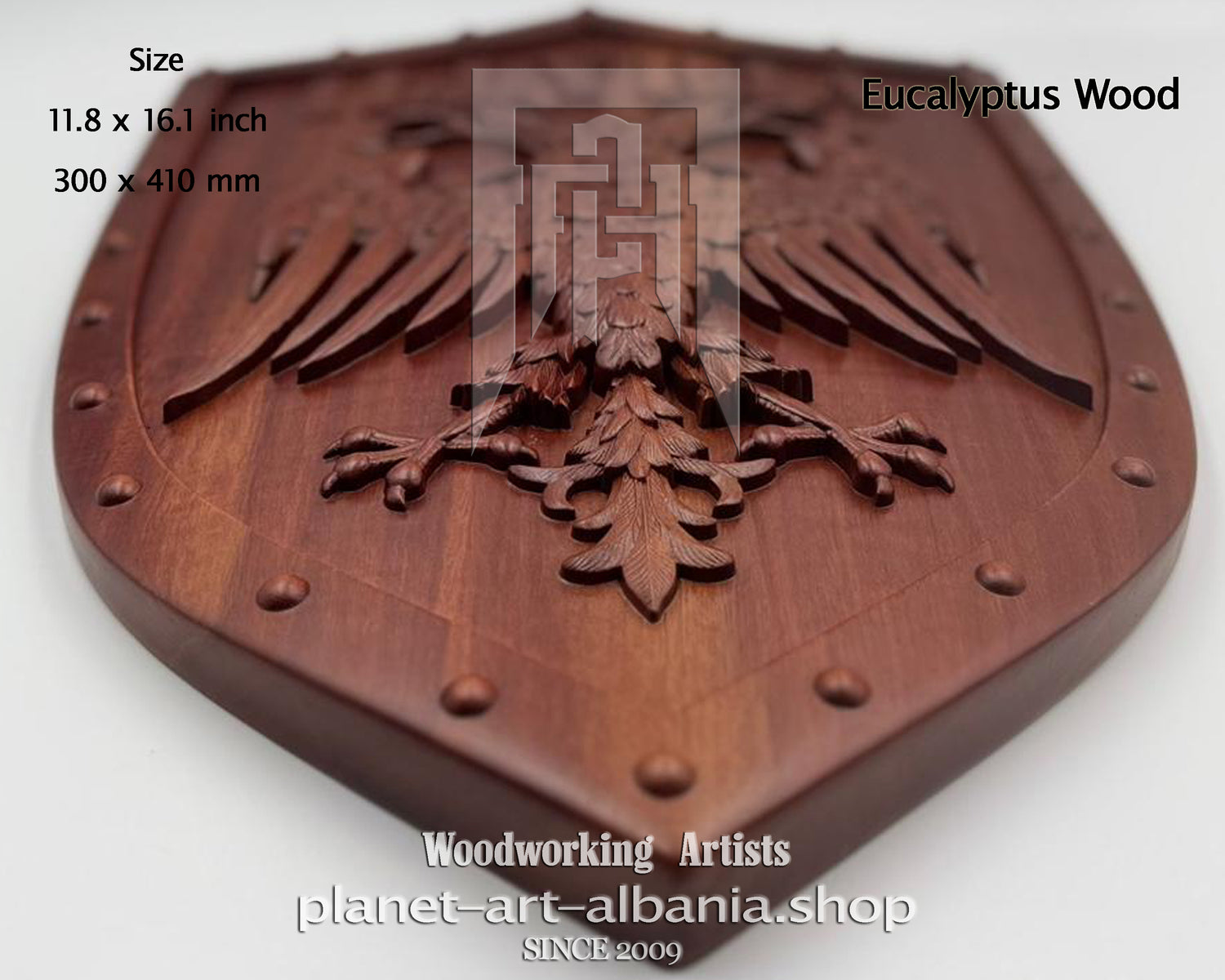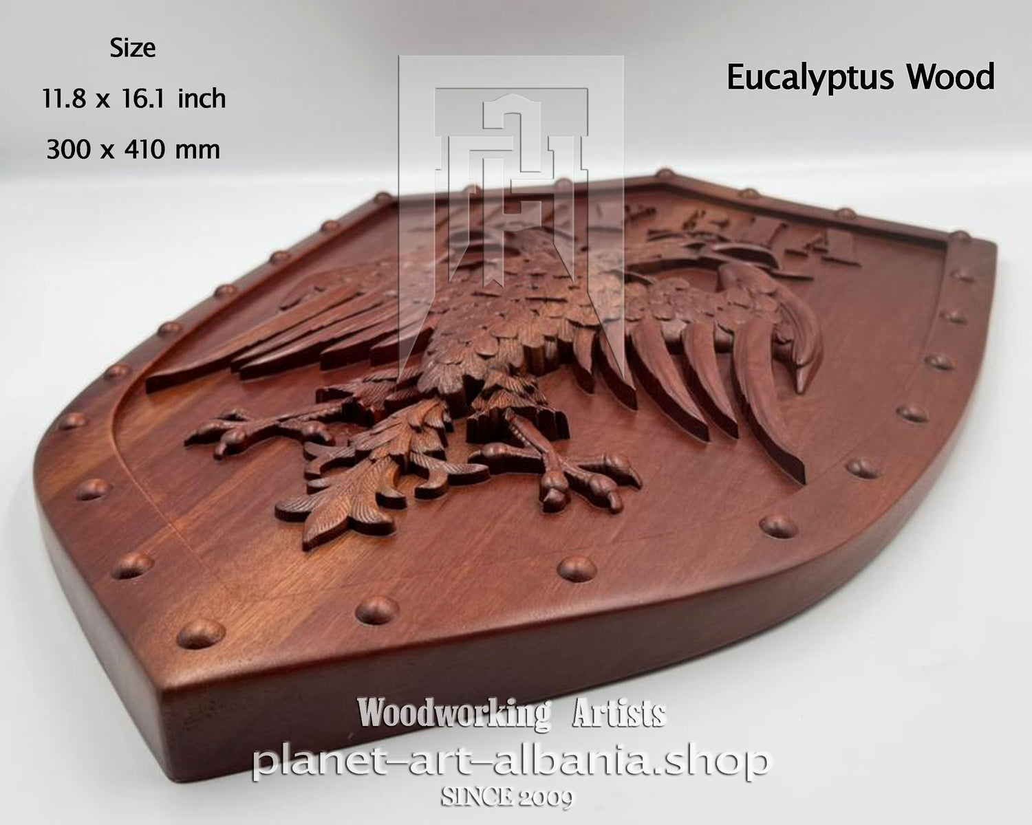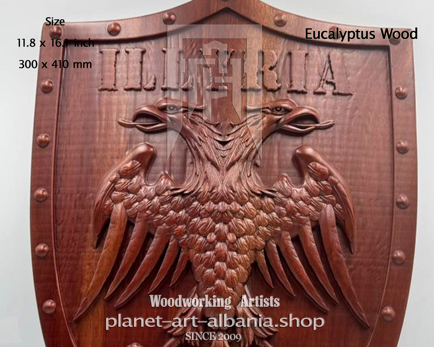 Illyria Eagle Shield, Wooden Wall Art, Patriotic, CNC Carved in Eucalyptus Wood